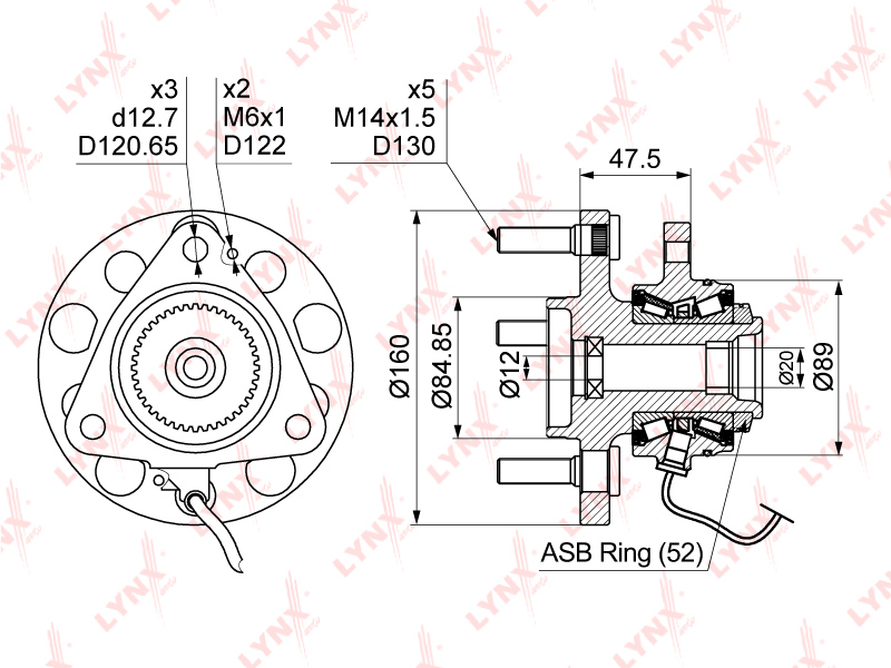 5 шпилек/ 4WD с подшипником и датчиком ABS SSANG YONG ACTYON/KYRON/REXTON
