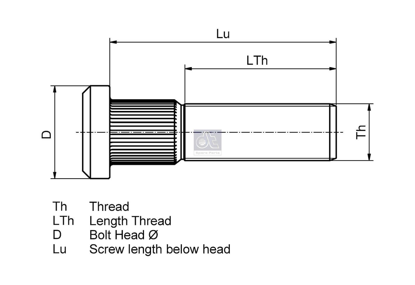 L=111/121mm 7/8″x14 UNFx40mm STD.DIM VOLVO TRUCK F16/FH12/16