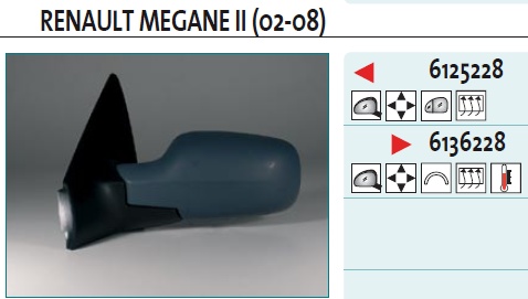 Right, complete, electrical, convex, heated, temp. MEGANE II (2002>)